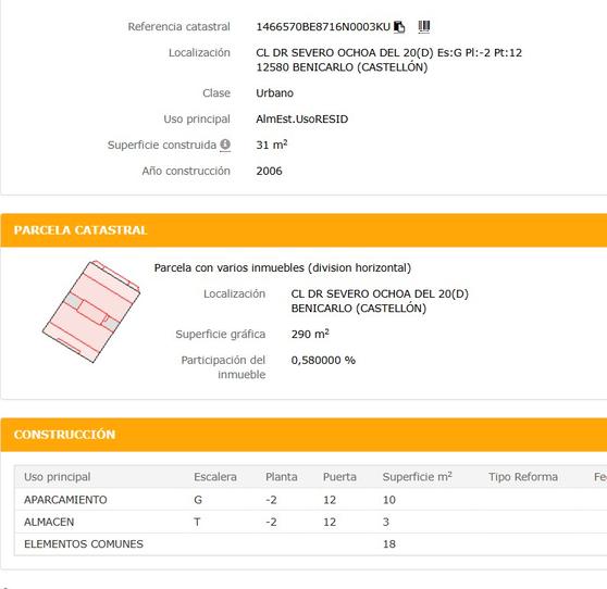 BENICARLO. C/ SEVERO OCHOA Nº 20. SE VENDE TRASTERO de 3 m2 CON PARKING de 10 m2 Se vende en total 3 parking con trastero.El acceso del vehículo se realiza mediante ascensor.Construido el año 2006.Planta -2